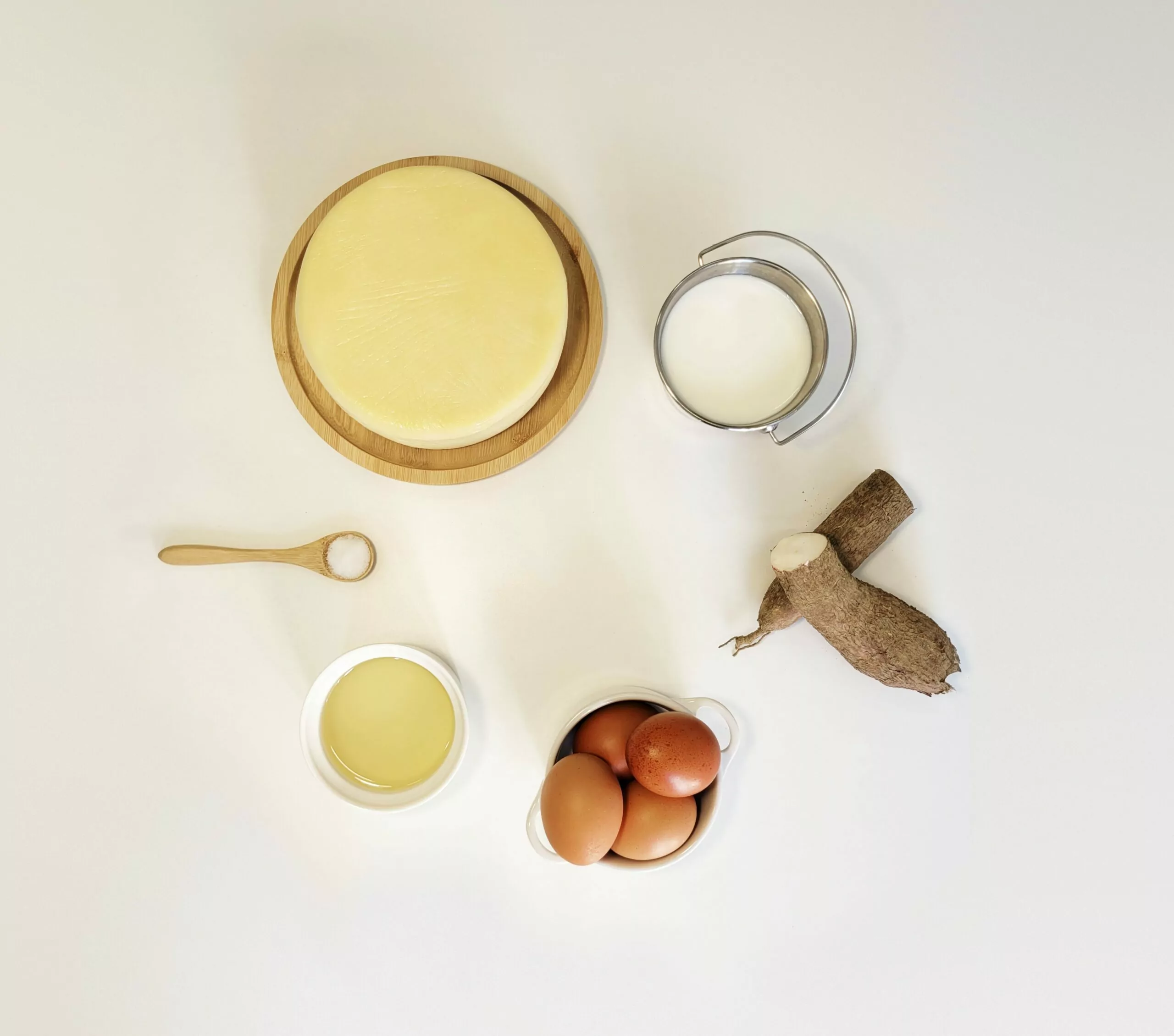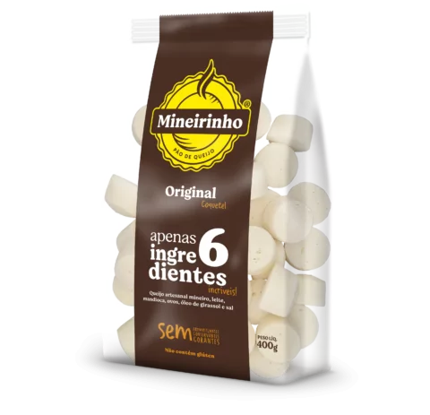 Leite fresco de Santa Catarina, recebido diariamente na Mineirinho. Fécula de mandioca, ovos, óleo de girassol, selecionados dos melhores fornecedores. Queijo artesanal da serra mineira, feito a partir de leite fresco cru. Curado à perfeição para que todo seu sabor aflore. E uma pitada de sal para finalizar.
